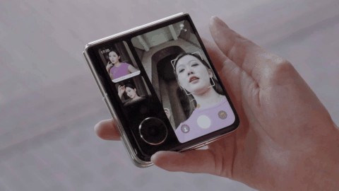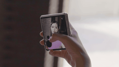 当然,运用折叠屏本身的优势,荣耀Magic V Flip可以在折叠时自拍,手机本身就是一个三脚架了,在咖啡厅享受下午茶时,即可通过这种方式更方便的进行自拍了。