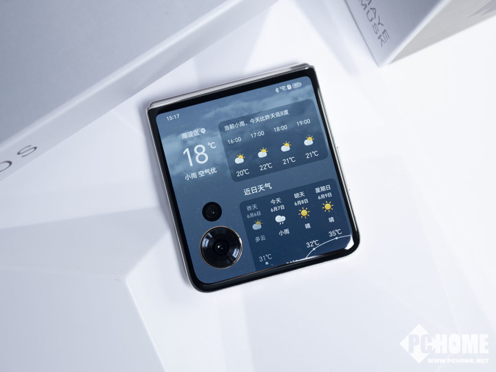 主显示区域则是其它显示部分,在将镜头部分的宽度去除后,屏幕就变成了一个我们熟悉的细长区域,该区域的比例就与主屏幕差不多了,是主屏幕的等比例缩减,看上去就比较舒适了。正是因为如此,在外屏使用的应用,与主屏幕的使用方式完全相同。