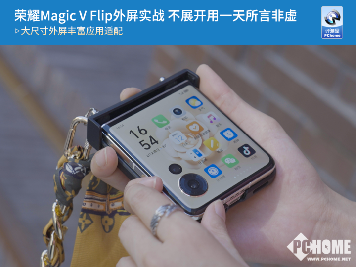 荣耀Magic V Flip的大尺寸外屏,已经达到了质变效果,外屏的高实用性,使小折叠手机的使用方式都发生了变化,它不再仅仅是个竖折手机,而是内外屏可以灵活切换的高颜值、高时尚手机。