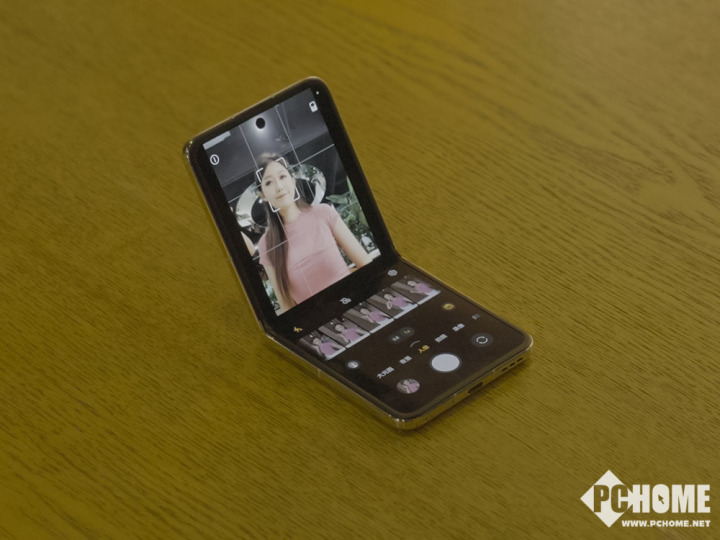 在下午茶期间想要来张自拍的话,就是荣耀Magic V Flip的优势项目了,外屏拍照提供了人像、拍照和录像三个功能。默认界面下左侧区域是预览区,点击后可以放大到全屏观看,外屏全屏预览是很多小折叠机型不具备的功能。