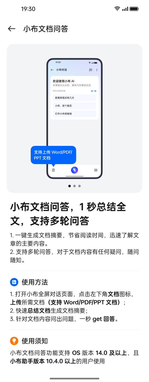 小布助手还支持全新的文档问答功能。用户在对话界面可以通过输入手机本地文档,获得文章摘要,文档内容问答等帮助。