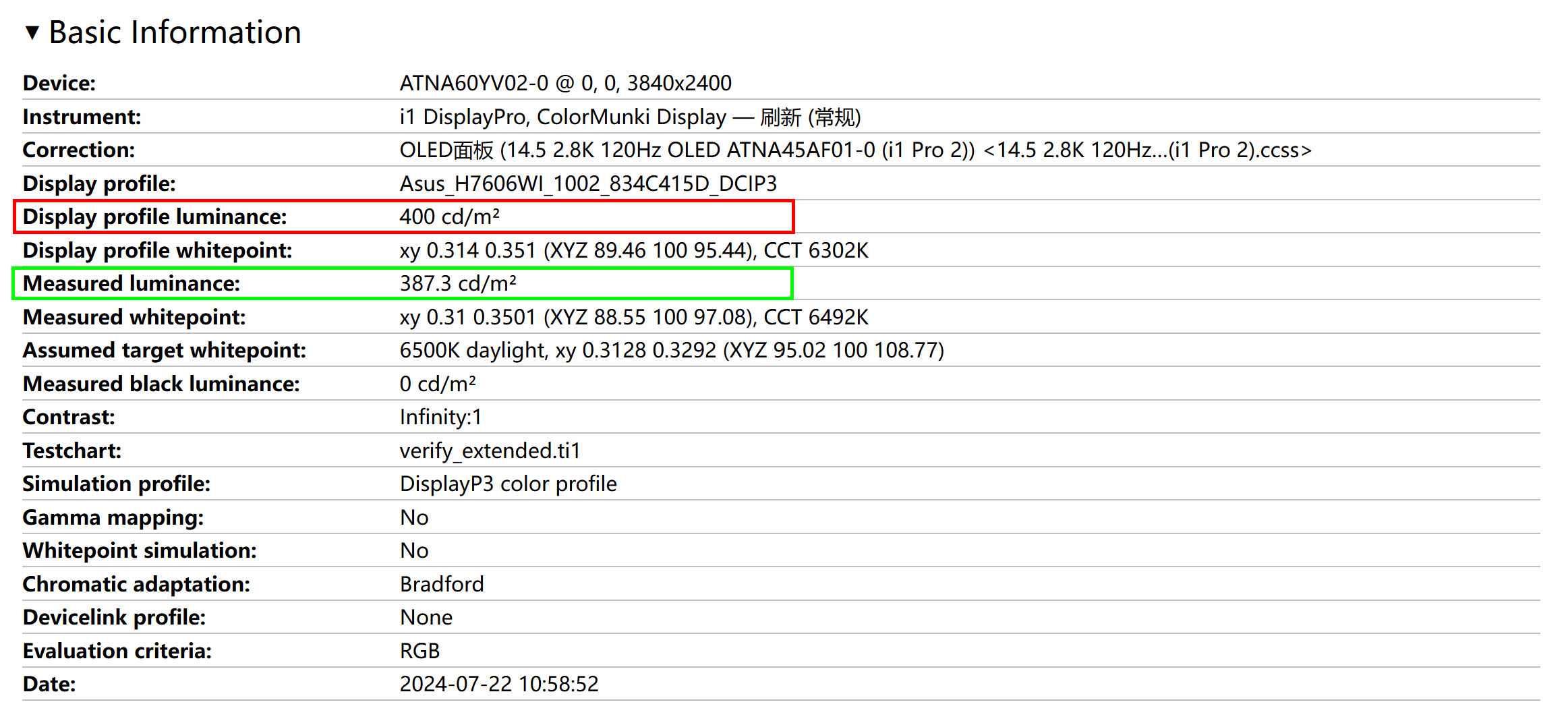 亮度方面,在未开启 HDR 模式时,屏幕亮度典型值为 400nit,实测手动最大亮度为 387nit。