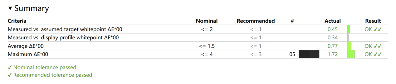 切换到 DCI-P3 色域模式,此时平均 Delta E 为 0.76,最大 Delta E 为 1.69。