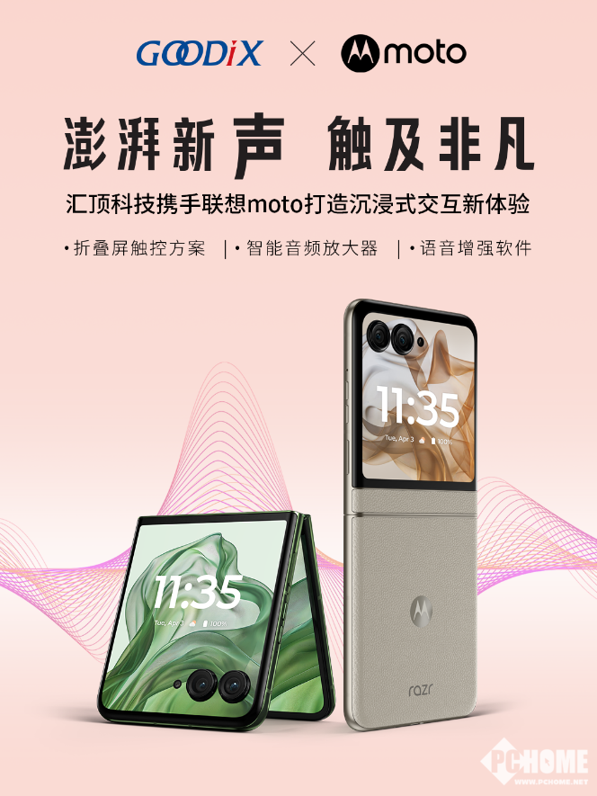 6月25日,联想moto razr 50系列折叠旗舰正式发布。汇顶科技与moto创新合作,为razr 50配备了最新一代智能音频放大器TFA9865,全系搭载汇顶的折叠屏触控及音频软件方案,共同为用户带来全新的触听体验。