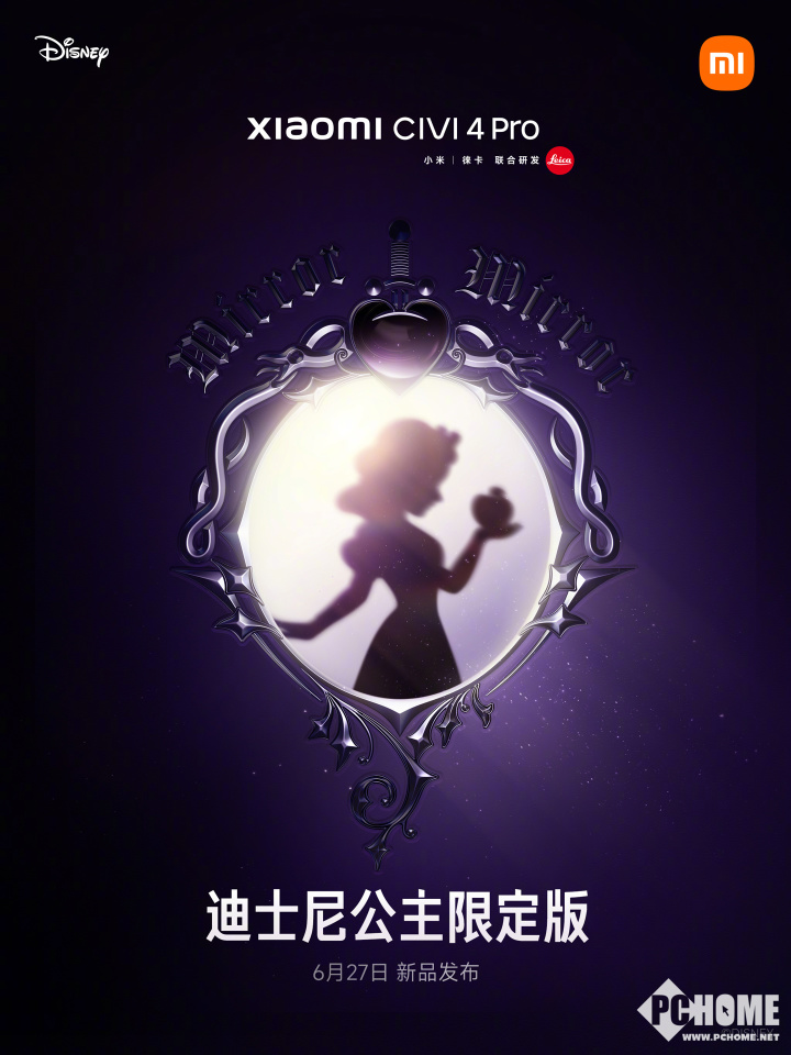 6月15日,小米官宣Civi4 Pro迪士尼公主限定版手机定档6月27日正式发布,宣传语为“公主请上镜,勇敢展现和欣赏真实的自己。潮流科技跨越碰撞,Pro实力重塑经典。构思1年的旗舰定制之作。”