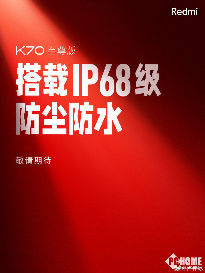 据卢伟冰透露,Redmi K70至尊版提供了IP68防尘防水等级,王腾也透露,Redmi K70至尊版的升级非常大,成本压力很大。