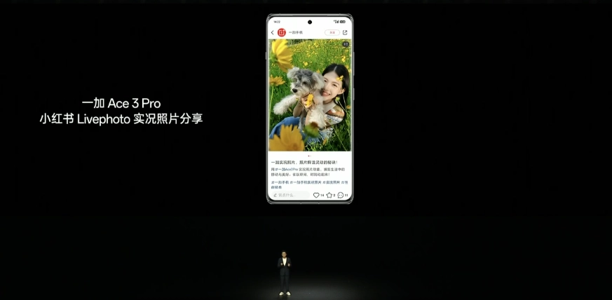 影像方面,一加 Ace 3 Pro 手机搭载索尼 5000 万像素 IMX890 旗舰大底主摄、Find 系列旗舰影像算法,支持实况照片功能,可直接在小红书 App 发布,还支持 AI 消除、AI 超清合影等。