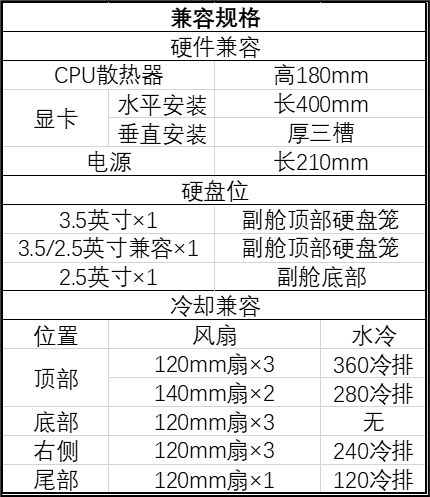 1 该机箱底部和右侧中有一侧支持 2 颗 140mm 风扇但不兼容 140/280 冷排。但在具体是哪一侧的问题上,官网的产品页面存在冲突。从现有资料来看,更可能是右侧。