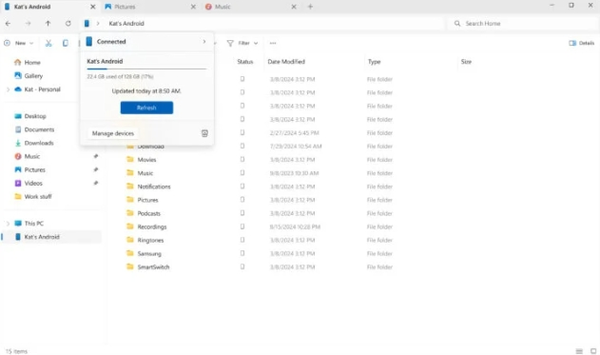 然而,微软正进一步简化这一流程。微软已宣布开始向所有Windows Insider渠道推送更新,此次更新让Windows 11用户能够在文件资源管理器中直接显示Galaxy智能手机或平板电脑,从而更便捷地在两个平台间传输文件。
