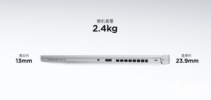 红魔刷新游戏笔记本做工新标准,航空铝合金材质,经过32道CNC一体精雕成型。机身最薄处仅13mm,轻至2.4kg,内置80Wh大电池,支持100W的PD快充,提供暗夜黑和冰川银两款配色可选。