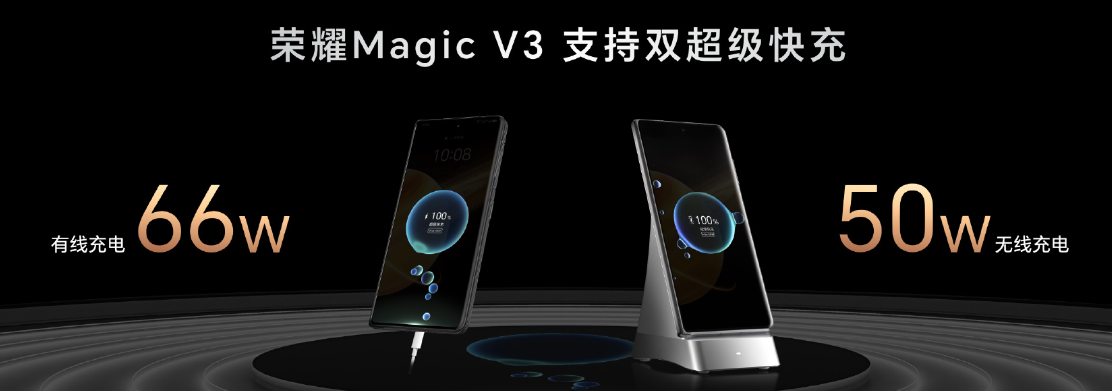 另外,荣耀 Magic V3 还支持双快充,有线充电支持 66W 快充、无线支持 50W 快充。