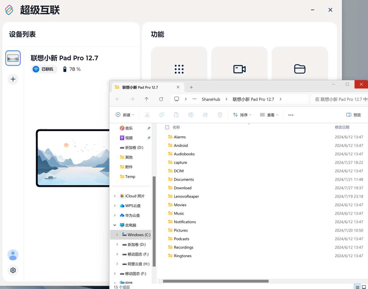 此次最让我惊喜的是联想在互联方面的进步,联想小新 Pad Pro 12.7 预装超级互联应用,拥有文件中转站、应用传送站和设备枢纽站三大功能。