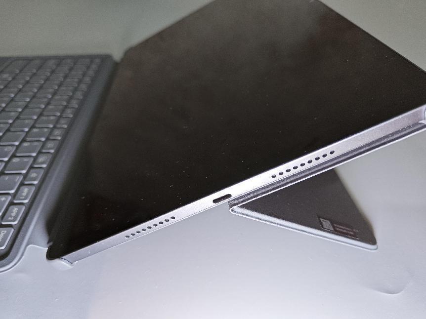 首先,在外观上。小新 Pad Pro 12.7 2025 采用了全金属一体化机身,简洁高效的冲压工艺与创新的屏幕支架隐藏工艺,赋予了它浑然一体的外观。这种设计不仅美观,更带来了舒适的握持体验。小新 Pad Pro 12.7 2025 左侧配备了电源键,并且集成了指纹识别技术,方便快速解锁。在机身的左上角,有音量控制键和 2 个麦克风。此外,设备两侧装备了 JBL 定制四扬声器,支持杜比全景声,可以提供沉浸式的音频体验。在右侧,设有一个全功能的 USB-C 接口,但并未配备 3.5mm 耳机插孔,因此需要使用无线耳机或转接器来连接有线耳机。而标志性的 2-tone 设计,配合外壳上精致的纹理,不仅增添了美观,更在细节中彰显了联想一直以来的设计理念。此外,小新的设计师们精心打磨了这款平板的每一个角度,前后对称的优雅 R 角不仅让外观更加和谐,更提供了一种难以言喻的舒适握持感。金属机身经过精细的喷砂工艺处理,每一寸肌肤的触感都变得细腻而丝滑,仿佛在抚摸一块光滑的玉石。