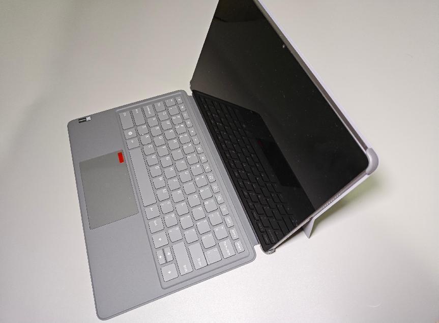 这款磁吸键盘的触感也非常令人满意。尽管它外观纤薄,但按键的行程却相当充足,达到了 1.5 毫米。其清晰而迅速的回弹效果,使得其使用体验与笔记本电脑的键盘几乎无异。键盘顶部的一行按键集合了众多便捷的快捷功能。ZUI 16 系统提供的快速浮窗和分屏操作,现在可以通过这些快捷键直接实现。此外,键盘右侧的 App1 和 App2 按键允许用户自定义设置,以快速启动应用程序。例如,如果你经常玩某个游戏,可以将该游戏设置为 App 键的启动项,之后只需一键即可迅速启动游戏。