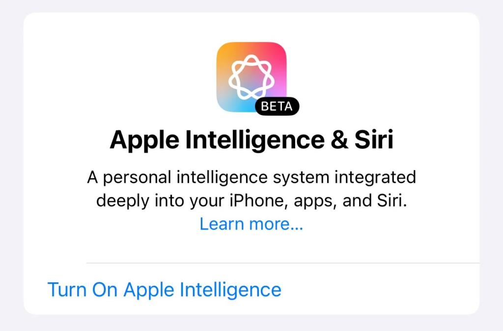 - 根据用户反馈,大多数人只需等待几分钟即可顺利获取体验资格。获取资格后,此处的提示将变为“启用 Apple Intelligence”。此时,您已经可以体验 Apple Intelligence 了。