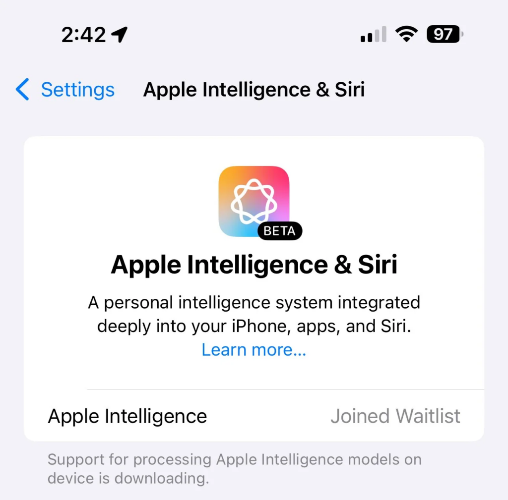 - 在“Apple Intelligence 与 Siri”中,可以看到一个“加入等待(候选)列表”的选项(可能需要一两分钟)。点击加入,然后它将变为“已加入等待列表”。
