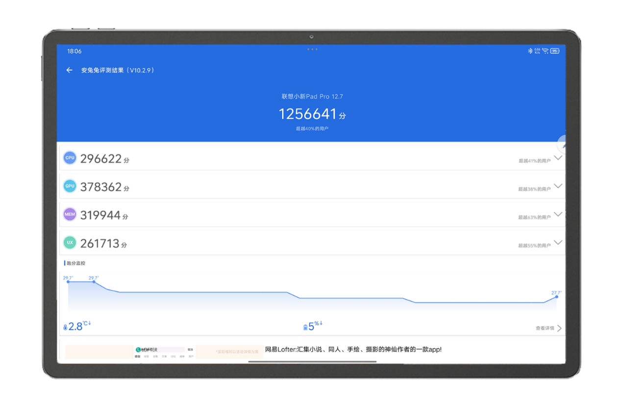 在性能释放表现不错的基础上,联想平板小新 Pad Pro 的机身温度表现也十分优秀,得益于超大的机身,即便长时间游戏,在双手握持的机身下半部分也完全不会感觉到明显的温度上升,保证了长时间的游戏体验。