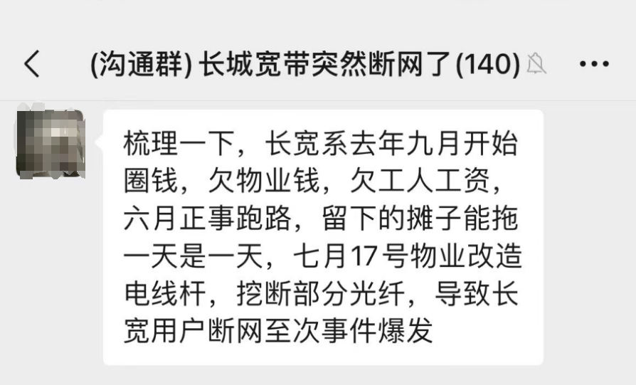 长城宽带与它曾经的合作伙伴长宽互联,让某小区的上千户居民,痛恨至极。