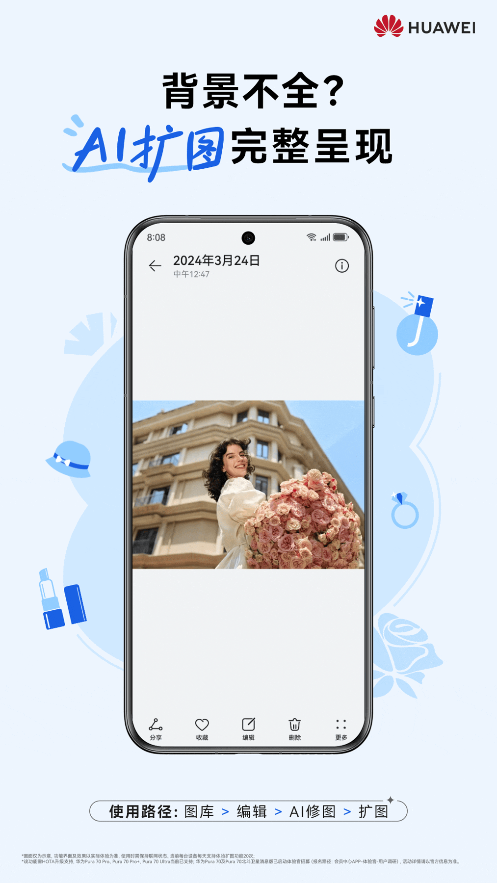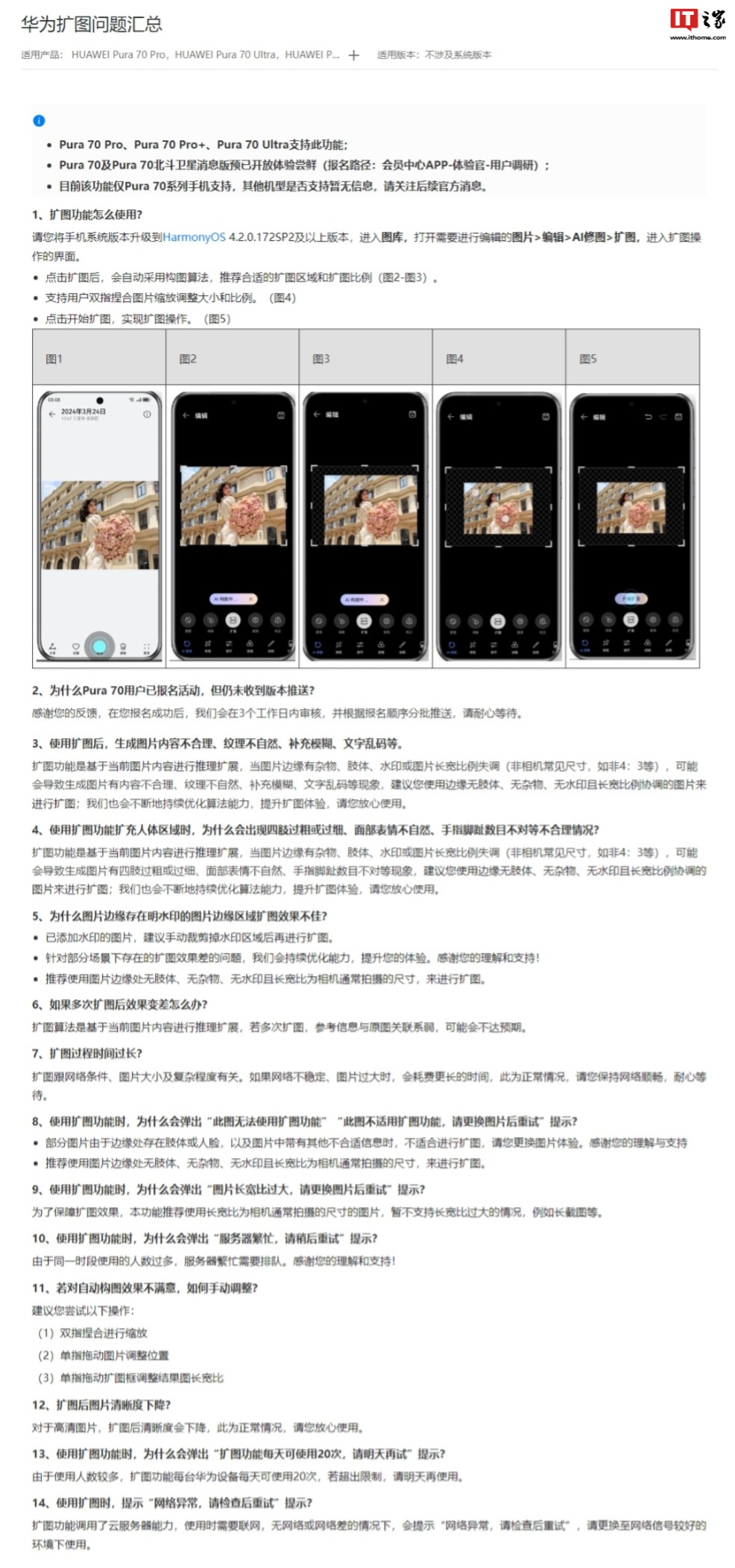 文章来源于互联网:IT之家-标准版跟上,华为 Pura 70 手机全系支持 AI 扩图功能