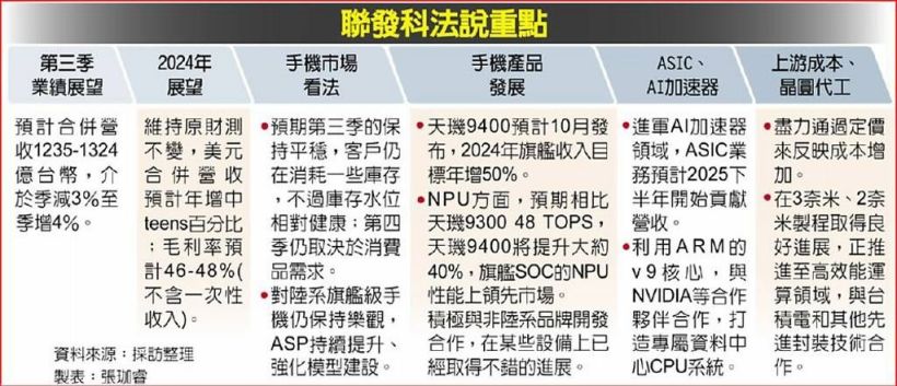 IT之家 8 月 3 日消息,联发科公司于 7 月 31 日举办财报电话会议,公司首席执行官蔡力行宣布将于 10 月推出天玑 9400 芯片,并预估公司在 2024 年下半年恢复正常的季节性模式。