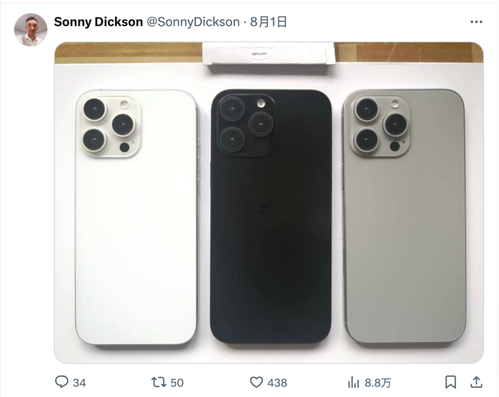 8月1日消息,知名消息源Sonny Dickson在X平台发布了iPhone 16 Pro Max的机模照片,继曝光iPhone 16标准版和iPhone 16 Pro之后,再次引起了广泛关注。这次曝光的机模展示了白色、黑色和灰色三种颜色,其中深黑色版本尤为引人注目,预计将成为今年的抢手颜色。