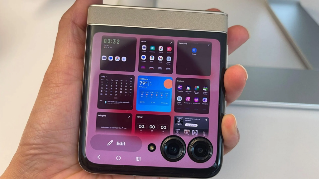 将应用程序添加到外屏非常简单。今年的新手势令人期待。与去年摩托罗拉 Razr 的外屏相比,今年的外屏不仅仅是一个小工具显示屏,而是一个完整的显示屏,设计上与主屏完全相同。封面屏右上角的一个简单的笔图标允许您将任何应用程序添加到其中。与 Z Flip 5 上的启动小工具不同,您只需点击一个应用程序即可使其成为外屏的一部分。