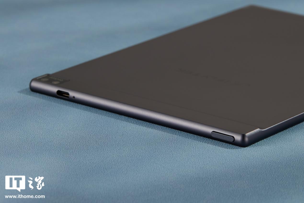 机身元素方面,办公本 Air 2 机身顶部为电源键和 USB 接口,机身右侧没有按钮,左侧是封面保护套的卡扣,机身底部也没有其他开口。