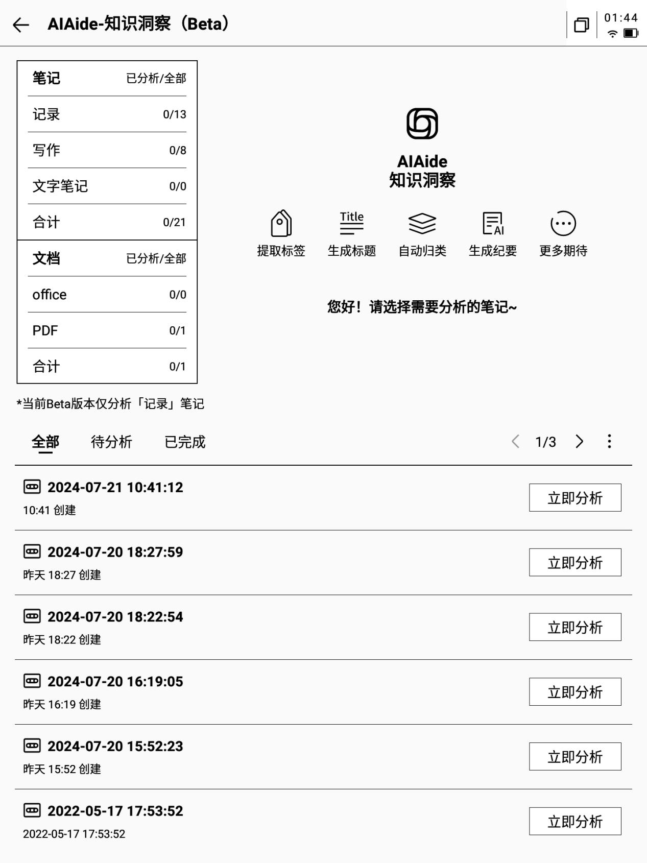 在使用时,你可以先选择让 AI 对某些笔记进行分析,办公本 Air 2 很快就会给出整理建议,它会给笔记只能生成标题,并为笔记添加标签。