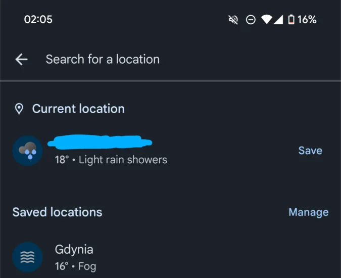 地点选择屏幕设计也同样简洁,但比旧设计更强调当前天气状况和温度。