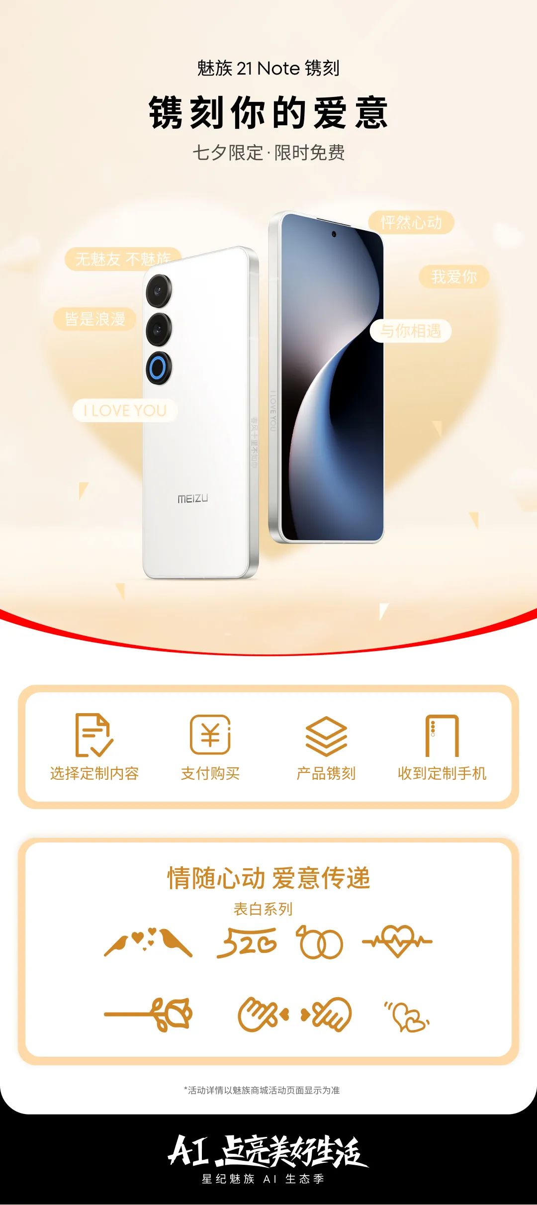 文章来源于互联网:IT之家-魅族 21 Note 系列手机镌刻服务明日上线:支持定制图案、自定义文字