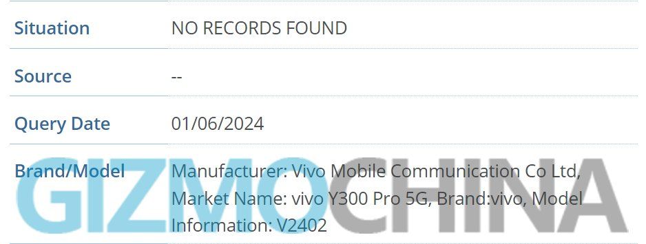 IT之家查询公开资料,vivo Y300 Pro 5G 手机已经于 6 月现身 IMEI 数据库: