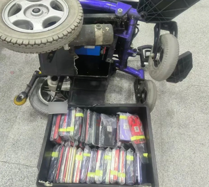 去年 8 月,一旅客电动轮椅内藏匿旧手机 152 部被查;去年 12 月,海关从轮椅查获 300 张 Switch 游戏卡带;今年 3 月,广东珠海拱北海关查获电动轮椅藏旧手机 176 台。