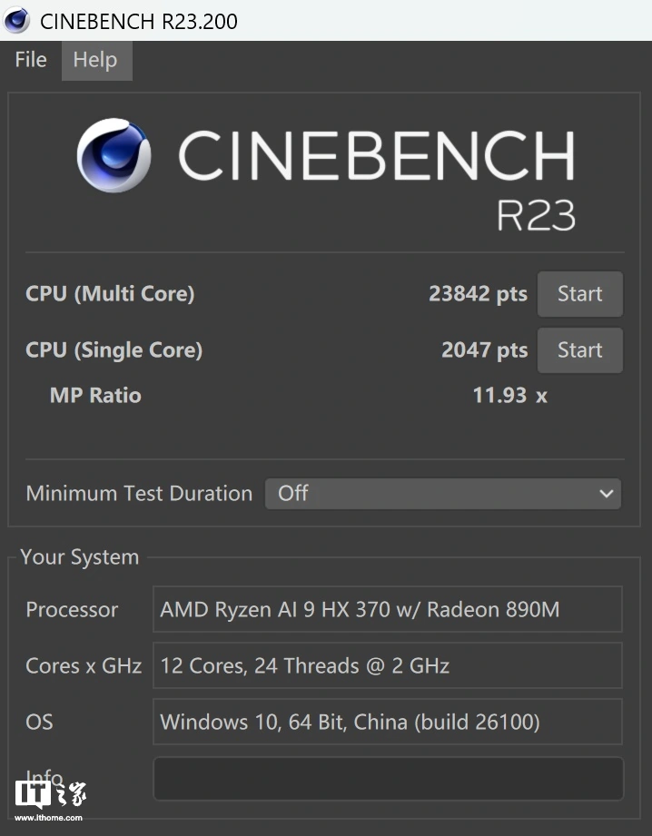 下面进入理论测试环节,所有测试成绩都基于奥创中心开启增强性能模式 + 独显直连模式下进行,核显表现会单独说明。之前我们已经评测过同款处理器的机器,所以当看到 23842 分的多核成绩、2047 分的单核成绩已经不是很惊讶了。同样是 80W 功耗,它相比 8945HS 处理器的多核成绩(17339 分)领先 37.5%,相比 Ultra 9 处理器的多核成绩(19588)分也有 21% 的领先幅度。