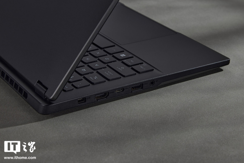 多出这部分的中间区域还放入了一个四相状态指示灯。机身尺寸方面,机身厚度最薄处仅 16.9mm,重量轻至 1.46kg,具体三围是 31.1*22.7*(1.69~1.99)cm,拥有堪比轻薄本的便携属性。