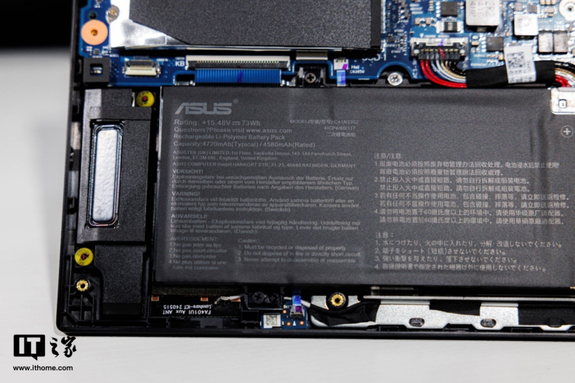 最下面则是一块 73Wh 电池,支持 100W PD 快充,整个内部区域的堆叠和填充比较合理。