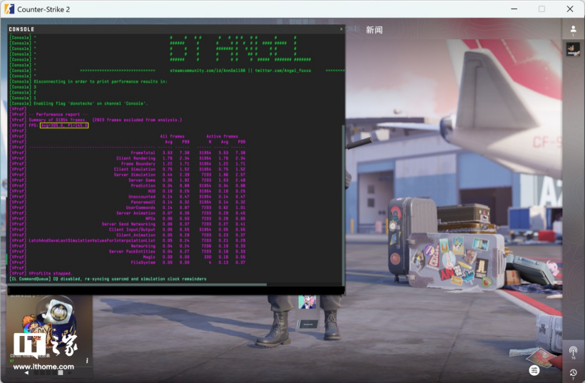 首先是在线竞技游戏《CS2》,进入游戏后我们选择 1200P 分辨率 + 低画质,使用创意工坊地图 dust2 Benchmark 地图进行测试,最终平均帧数为 305 帧,1% Low 帧为 145 帧。作为对比,酷睿 Ultra 9+RTX 4060 的平均帧数为 294 帧,1% Low 帧为 139 帧。