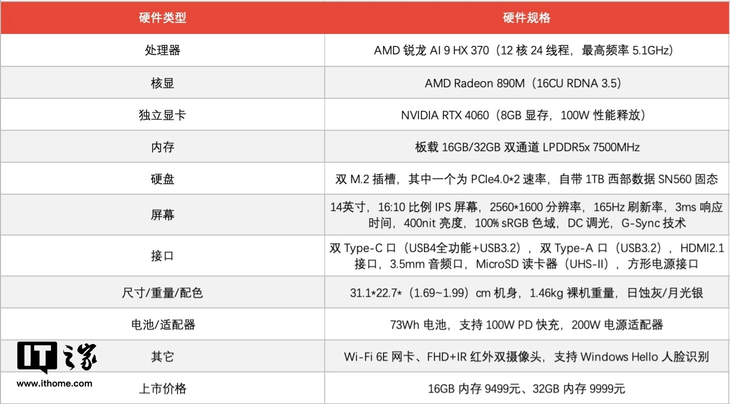 今天这期评测,IT之家就和大家聊聊这台 14 寸全能 AI PC 的表现究竟如何,这里先附上它的具体配置信息: