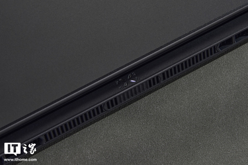 华硕天选 Air 2024 的 A 面仅保留了一个镭刻工艺的圆形天选 Logo,低调不张扬,转轴并没有做在背部边缘,而是和 CD 面有一定的宽度差。