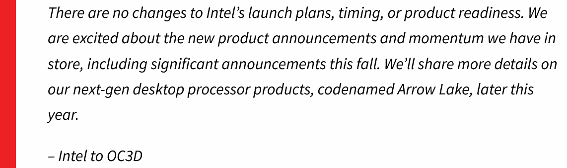 英特尔官方就此向外媒 OC3D 回应称: