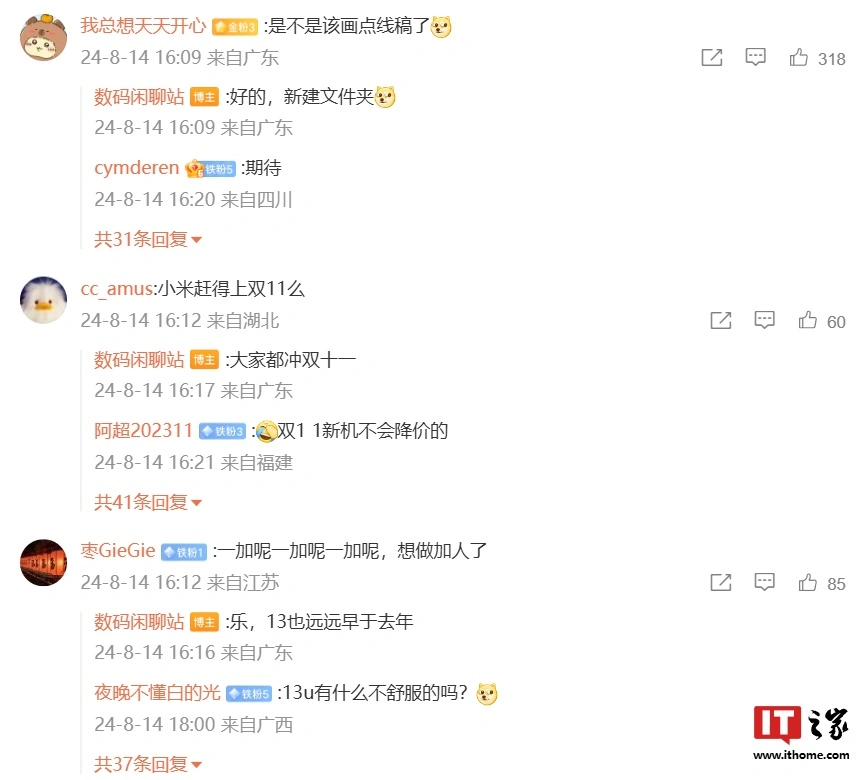 博主在评论区中补充说明,各家都会“冲双十一”,一加 13 手机也将早于去年发布。