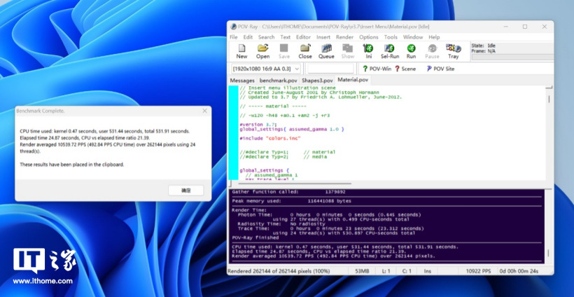 在 V-Ray BenchMark 6 的 CPU 渲染测试中: