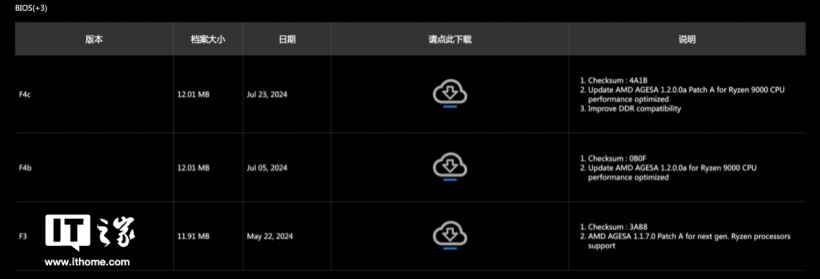 此外,技嘉电竞雕 B650E AORUS PRO X USB4 主板还支持 Q-Flash Plus 技术,可实现无 CPU 环境一键更新 BIOS 功能。说到这个功能,一开始的测试平台搭建阶段我们就用上了,由于 AMD 官方首发支持的四张主板都是 X670E 平台;而我们测试所使用的是 B650E 平台,因此需要去技嘉官网自行下载 BIOS 至基于 AMD AGESA 1.2.0.0.ab 的最新版本,否则主板是无法识别辨认新 CPU 的。