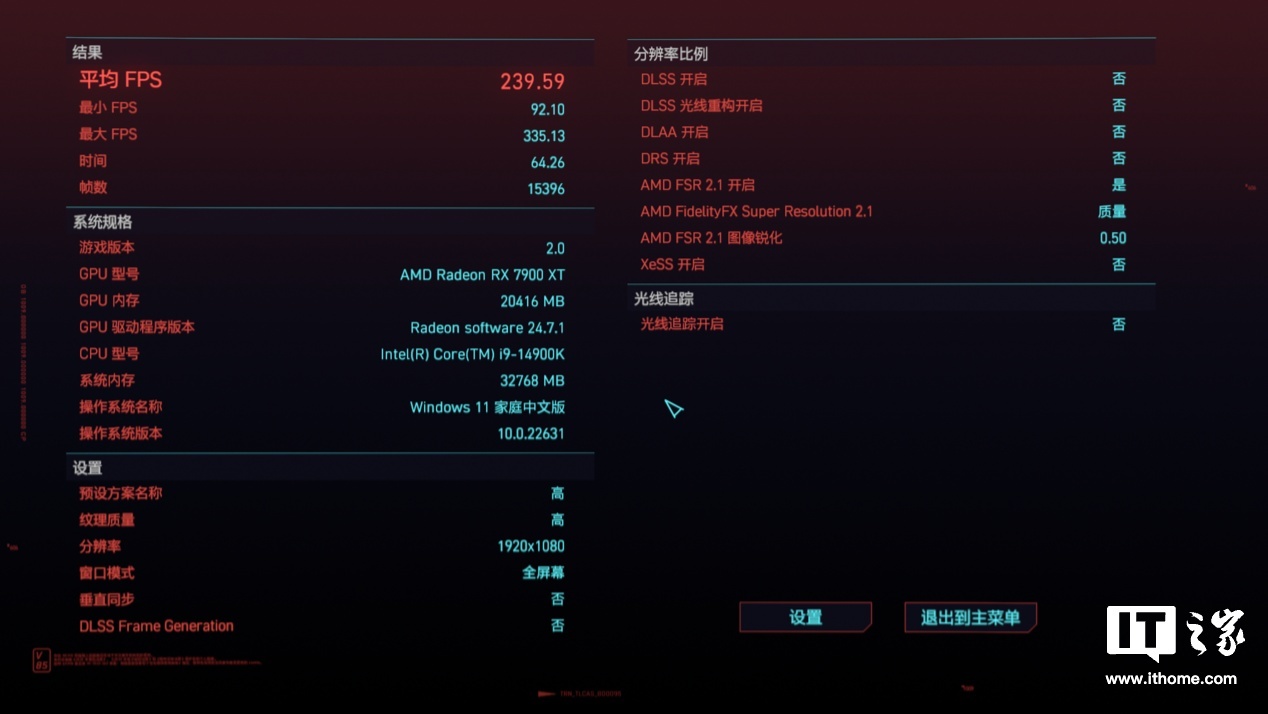 酷睿 i9-14900K 的游戏平均帧数为 239 帧