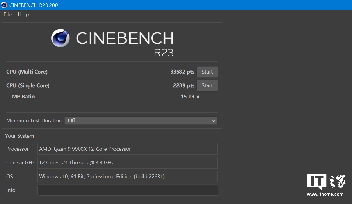 在 CineBench R23 的测试中,锐龙 9 9900X 单线程分数为 2239 分、多线程分数为 33582 分,锐龙 9 7900X 单线程分数为 2033 分、多线程分数为 28863 分。前者在单线程和多线程上的提升约为 10.1% 和 16.3%。