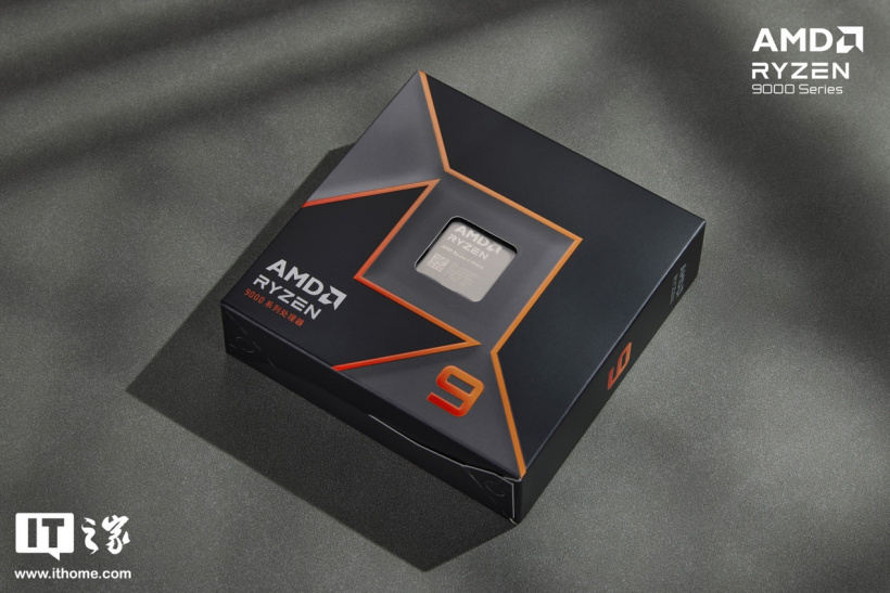 本次锐龙 9 9900X 处理器采用了体积更加小巧的方形包装盒,整体还是四四方方的造型,但是高度明显矮了下来。