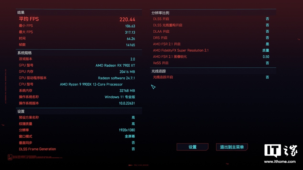 锐龙 9 9900X 的游戏平均帧数为 220 帧