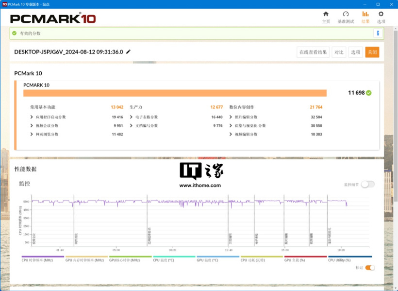 锐龙 9 9900X 的综合得分为 11698 分