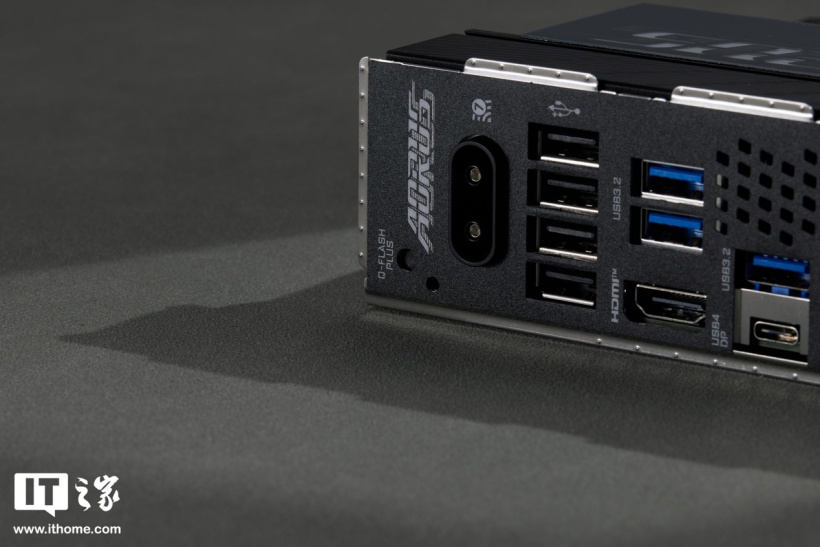 另外,技嘉电竞雕 B650E AORUS PRO X USB4 主板的颜值也非常高,整体采用高级感的炭黑系 PCB + 黑色基底的金属散热装甲、辅以灰色装饰图案点缀,用在纯黑色系或深色系的桌搭上相当合适。