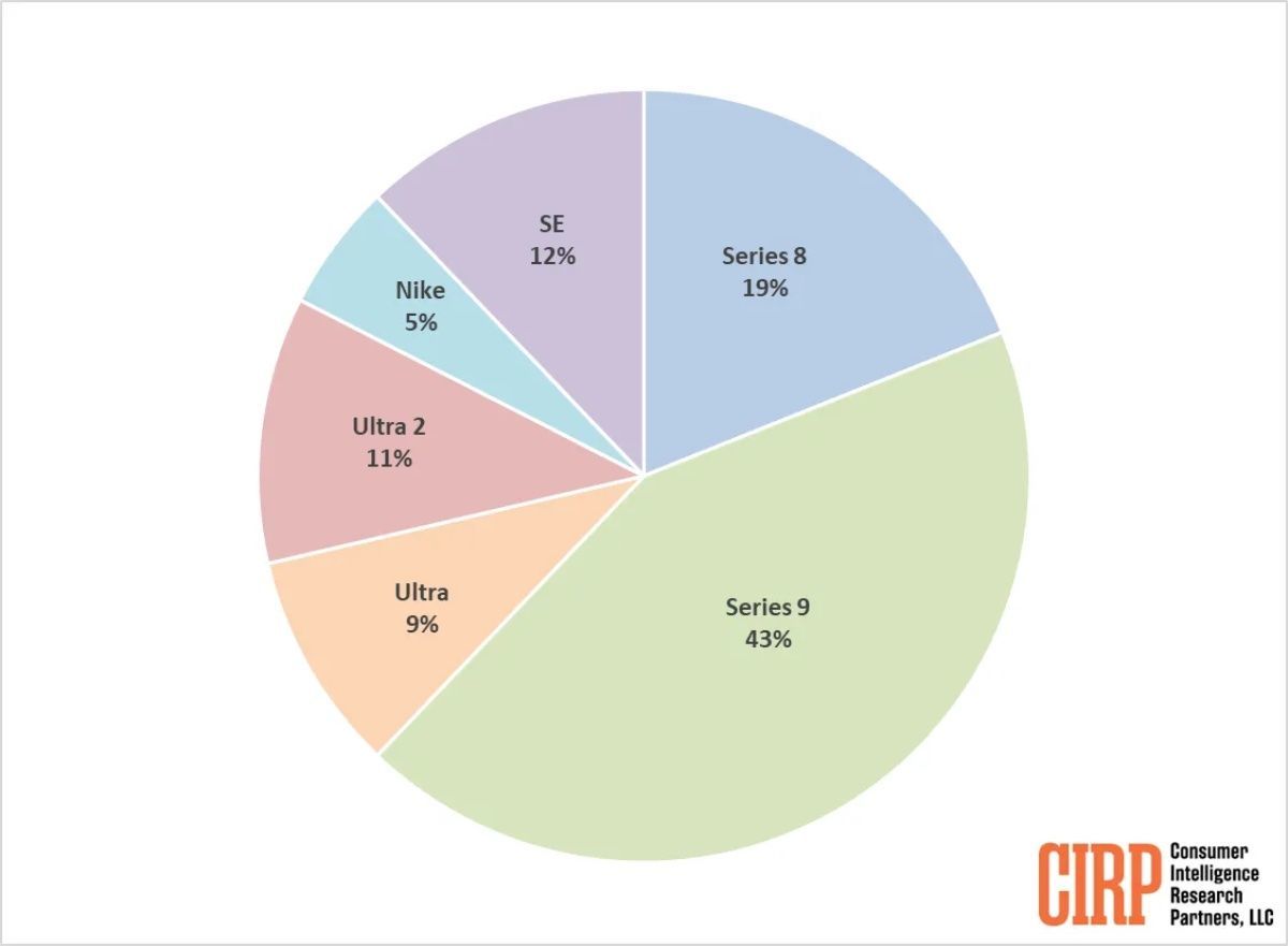 IT之家 8 月 15 日消息,消费者情报研究伙伴公司(CIRP)发布最新报告,表示在 2024 年第 2 季度美国销量最高的 Apple Watch 型号是 Series 8(19%)和 Series 9(43%)。