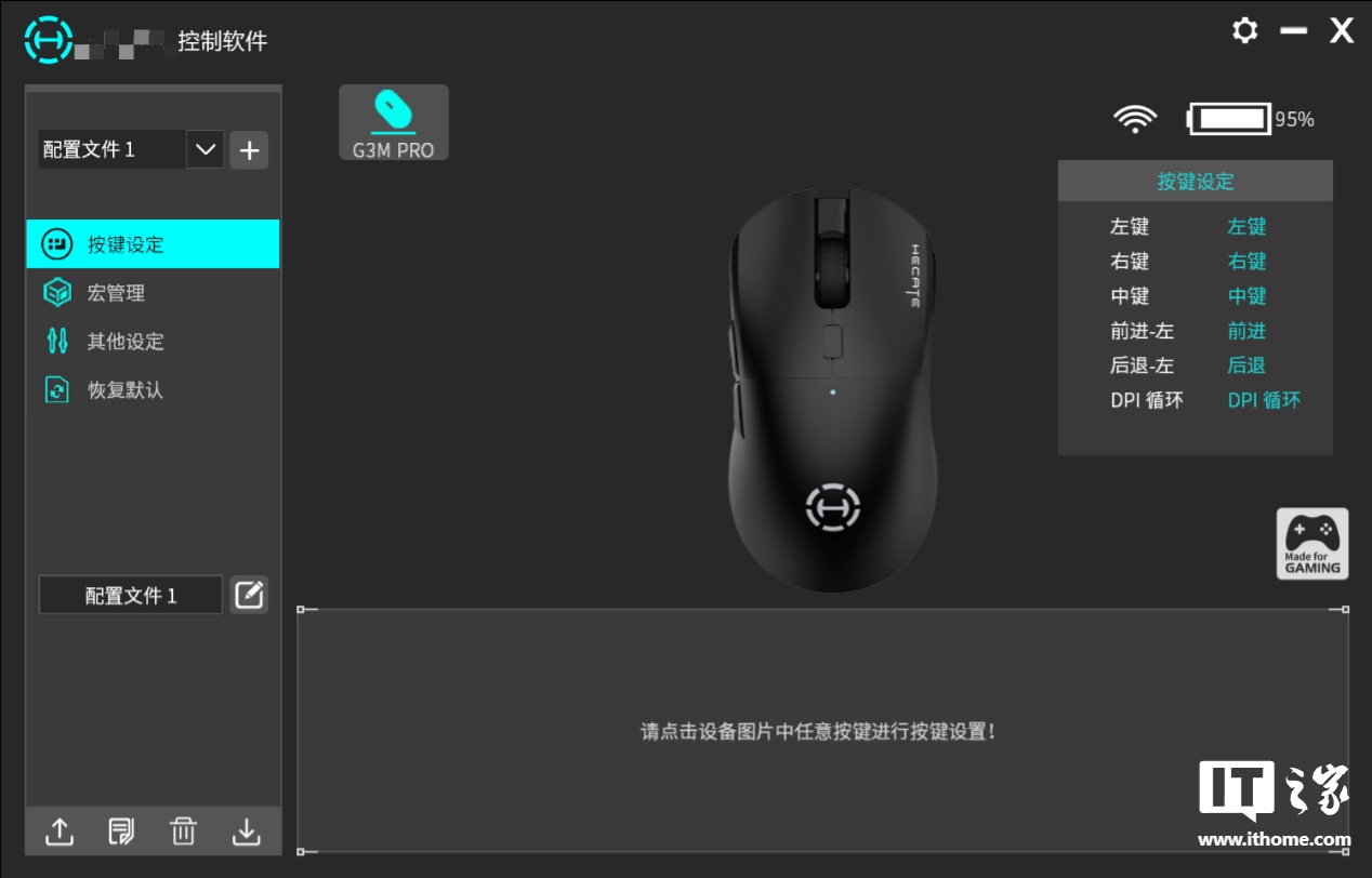 小编自用的游戏鼠标可以正常使用,配套驱动软件也可以正常运行并识别设备。
